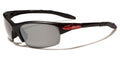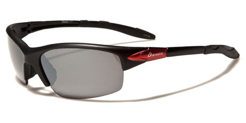 These sport style sunglasses by Oxigen are designed for men and offer excellent protection to your eyes when you're out riding or playing. The frame is made of plastic with several design elements to make them look cool. The arms are straight and have a rubberized coating over the ear for better grip. The Oxigen logo is seen on the side on a two-tone section of the arm. The smoke lenses are set in a semi-rimless style and have a coating that protects against ultraviolet rays.