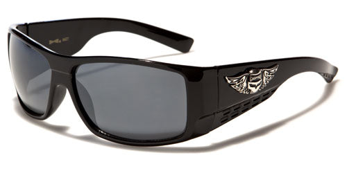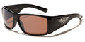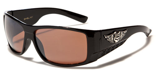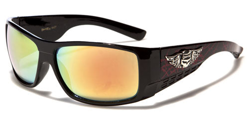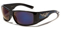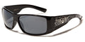 Choppers brand makes sunglasses for bikers who want to keep their eyes safe, but also want to look cool and sport their own attitude and style. These nice shades for men do all that and more. The frame is made of strong plastic and features several design and texture elements that draw the eye. The arms are thick with a vented lower panel and the Choppers logo loud and proud on the side. The lenses have a finish that blocks out ultraviolet rays and protects your eyes.