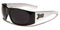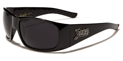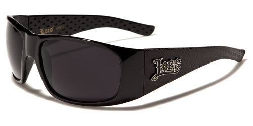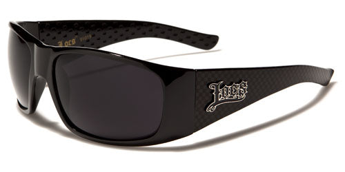 The interior of the arms features a cool textured pattern that gives added comfort and grip to the sunglasses. Made by Locs for men, the frame is all plastic and has a large and thick look with a molded shape that fits your head. The arms come straight off the temples and taper back to the slight curve at the ear. The Locs logo is seen on the side in raised letters. The lenses are large rectangles with rounded edges and a dark finish that protects your eyes and your privacy.