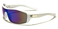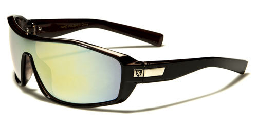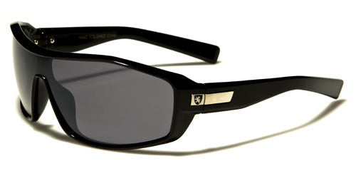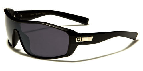 These men's plastic Khan sports sunglasses are unique in their appearance. They are sure to get the attention of people who pass you by based on their look alone. There's one variety of these sunglasses that's available with white frames and bolder looking lenses. Although these sunglasses are different looking, you could easily match them with a number of various fashion options. Because these sunglasses are available in a simple range of looks, you could fill out your wardrobe without having to go to another brand of sunglasses. Being able to stick with one type of sunglasses is advantageous for everyone involved.