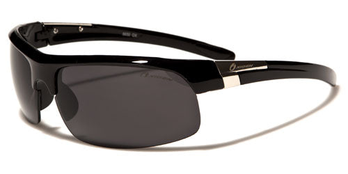 Semi-rimless sunglasses never looked as hip as these cool shades for men by Oxigen. The frame is made of plastic, designed to be lightweight and comfortable to wear, but also strong and durable to stand up to rough use. The arms are thin and come straight off the temples with a slight downward curve. The Oxigen brand is seen on the side on a silver field. The lenses are dark with and added nosepiece for better grip. Purchase in bulk for outstanding savings.