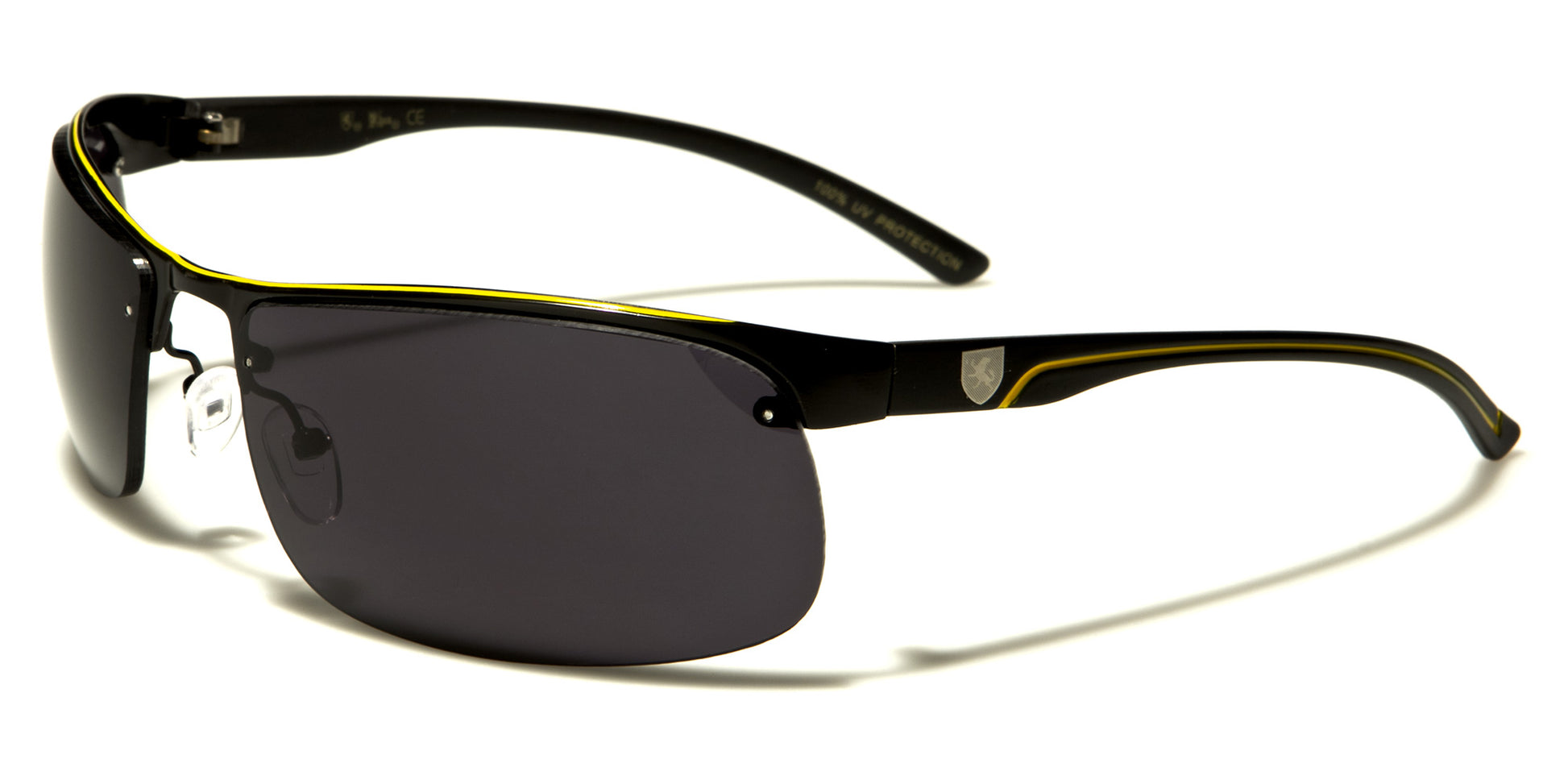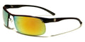 These men's semi-rimless smoke- or revo-lens plastic bulk Khan sunglasses are shiny and unique. You could wear them during your daily errands or decide they're right for you for when you are exercising. The bright colors that these sunglasses come in are wild and vibrant. Since exercise clothing is available in so many bright colors to begin with, you won't have any problem figuring out which option is best for you. Choosing a pair of sunglasses like this one gives the wearer all sorts of opportunities to put the sunglasses with an outfit that's sure to bring the best out of them.