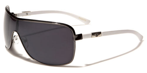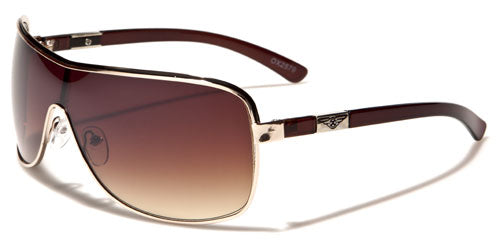 These cool shades feature dark lenses that come together in the middle in a shield pattern to protect your eyes from the sun and other dangerous elements. Designed by Oxigen for men, they are made of metal and plastic and meant to be strong but also flexible and comfortable to wear. The arms are thin and straight with the Oxigen logo displayed on the side. These awesome shades can be yours in several different frame and lens color combinations to match your own taste.