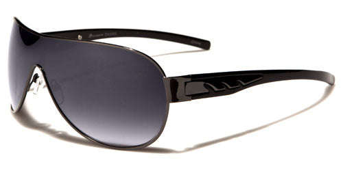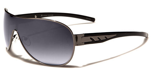These aviator-style shades with several design elements give them their own attitude and let you show off your individual taste. The glasses are made by Oxigen for men and feature a metal frame and plastic arms that are both flexible and rigid where needed. The contour of the lightweight frame lets the shades fit comfortably. The lenses are dark and in the shield style to better protect your eyes and afford you the privacy you deserve.