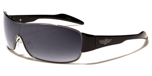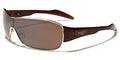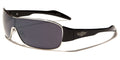 Shield-style sunglasses feature a lens that flows together in the middle and gives your eyes added protection against the sun, dust, debris and other hazards. These sweet shades by Oxigen are designed for men and are made to keep your eyes safe and keep you looking good. The sunglasses are made of metal and plastic, with a thin band around the lens and a thicker plastic arm structure. The arms have the Oxigen logo on the side in a cool pattern.