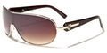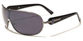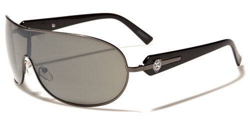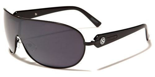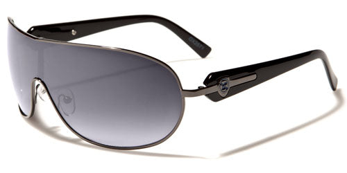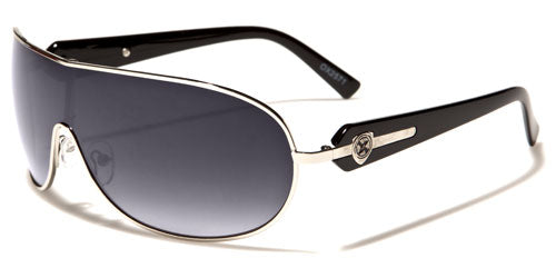 Sleek and dark, these sunglasses for men by Oxigen will surely get you noticed and let you stand out in any crowd. The frame is metal, and the arms are plastic, thin around the lenses with a thicker arm section that is durable and rigid. The arms come off the frame with a thin section, then beef up and taper down to the curved ear. The lenses are large in the shield style with a dark finish that gives you protection from ultraviolet rays. Purchase in bulk for excellent savings.