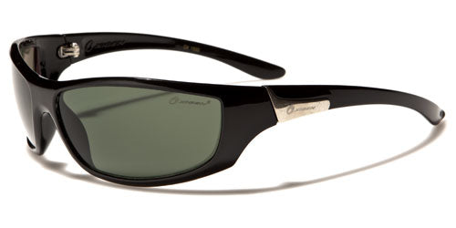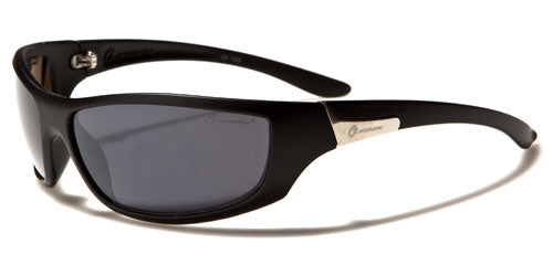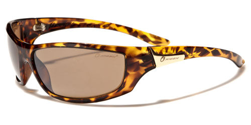 Sleek and smooth looking, these sunglasses for men by Oxigen are designed for sports and are made in a wrap style that helps keep them on your head no matter what you're doing. The frame is all plastic, rigid and tough, but also lightweight and comfortable to wear for long periods of time. The arms come off the temples and sweep back to the ear. The Oxigen logo is seen on the side against a metal field. The lenses are strong to protect your eyes.
