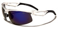These wraparound style sunglasses for men by Oxigen are stylish, comfortable and strong enough for the most vigorous use. The frame is made of flexible and durable plastic. The lenses are rectangular and set in a semi-rimless frame. The lenses are dark enough to offer both privacy and protection from the sun. The arms flare out and sport a triangular cutout before tapering down and curving around the ear. These sweet shades are available in many different lens and frame colors.