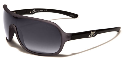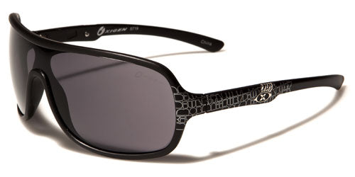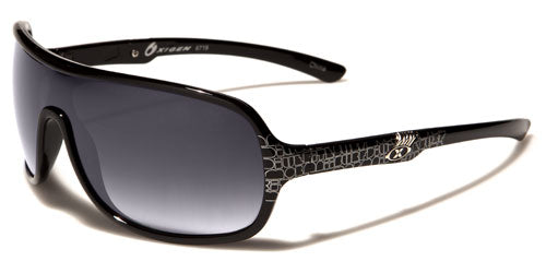 Stylish and eye-catching, these men's sunglasses by Oxigen feature a cool pattern along the arms and on the side of the face. The frame is made of durable plastic and is designed to fit comfortably on your face. The arms are thin and display the Oxigen logo on the side next to a step down. The lenses are rectangular but connected in a shield, intended to give you great protection while maintaining your field of vision. These shades are available in several colors per dozen.