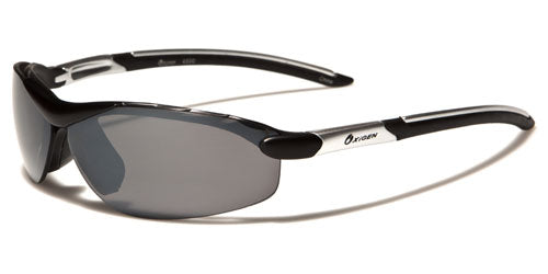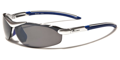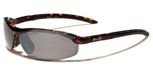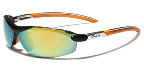 These sunglasses are made for sports and feature a lightweight construction with strong plastic that holds its shape and stands up to rough use. Made for men by Oxigen, the frame is made of plastic and designed for any outdoor activity. The arms come off the temples and stay straight back to the slight curve at the ear. The Oxigen logo is seen on the side in either white or black writing. The lenses are set in the semi-rimless face and offer excellent UV protection to your eyes.