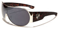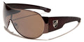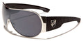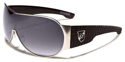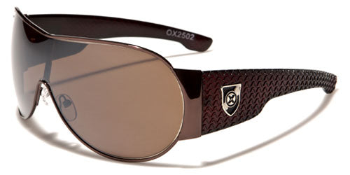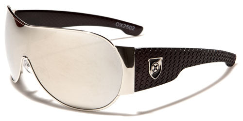 Thick and with an in-your-face style, these cool sunglasses by Oxigen are made for men who want to be different and set the trend. The frame is metal, and the arms are plastic, thin around the face and thick everywhere else. The arms come straight off the temples and feature a cool textured design with the Oxigen logo proudly displayed on the side. The lenses are large in the shield style, with a dark finish that gives you excellent privacy and protects your eyes from the sun.
