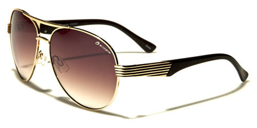 The stylish pair of Oxigen bulk sunglasses gives a refreshingly new take on the classic aviator style. These aviator sunglasses for men are made of high-quality, yet flexible, metal and plastic, and the lenses are made of plastic that come in gradient smoke and gradient brown. The full-frame style comes in different colors: gunmetal, silver, gold and bronze. The metal temples bear a striped design, and the curved earpieces are wrapped in plastic. The sunglasses also feature clear, movable nose pads and the white Oxigen brand name in the upper left corner of the left lens. These are available for bulk purchase at one dozen of sunglasses per box.