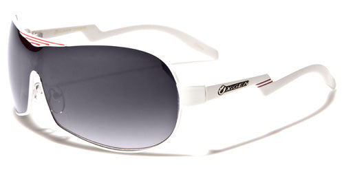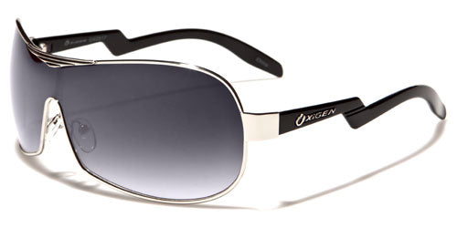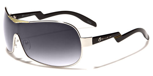 You've never seen a pair of aviator sunglasses quite like these. Made by Oxigen for men and women, the arms on these beauties have a unique and eye-catching zigzag pattern that will surely make you memorable wherever you go. The frame is metal, and the arms are plastic, flexible and rigid where and when it is needed. The arms sport the Oxigen logo on the side just before the crazy pattern. The lenses are large and dark in the shield style for excellent eye protection.