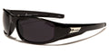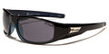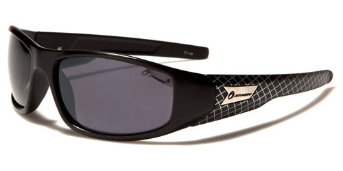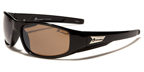 The arms of these cool shades have an extra panel on the bottom that adds to their thickness and strength. Made by Oxigen for men, these sunglasses are designed to fit and stay on in any circumstance. The frame is solid plastic with a durable, yet lightweight, composition. The arms come straight off the face and have a slight inward curve throughout. The Oxigen logo is seen on a silver field on the side. The lenses are dark with a rounded look and offer excellent UV protection.
