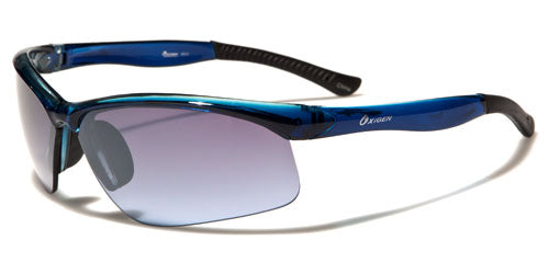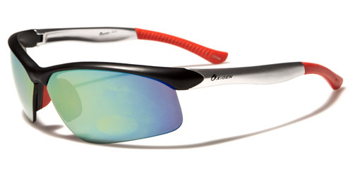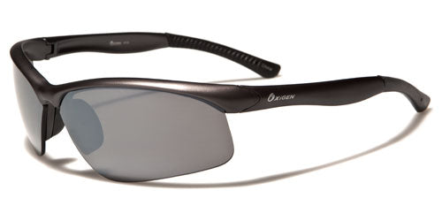 Sports glasses need to be tough, and they need to stay on your head no matter what you're doing. These sweet shades by Oxigen for men will do all that and more. Made of strong plastic with added rubberized grips on the ear- and nosepieces, these shades will stay on and fit comfortably. The frame is molded to conform to your head and is lightweight, yet tough and durable. The lenses are set in the semi-rimless frame with a finish that deflects ultraviolet rays.