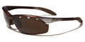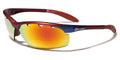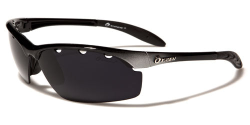 Semi-rimless sunglasses with attitude, these nice shades by Oxigen are designed for men who lead an active lifestyle and need dependable glasses. The frame is plastic and is ultra-lightweight, intended to be worn comfortably for long periods of time. The arms are thin and straight with textured earpieces for better grip. The lenses are curved rectangles with air ports along the top and a dark finish to protect your eyes and give you excellent privacy.