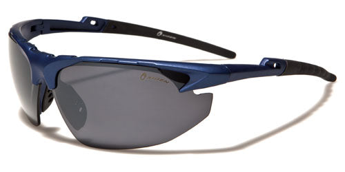 Thin and lightweight with a cool textured look, these shades for men by Oxigen are made for sports and outdoor activities and will hold up under extreme usage despite their fragile appearance. The frame is made of plastic, designed to be flexible, but rigid enough to hold its shape. The arms come off the temples and feature rubberized earpieces for better grip. The lenses are rounded rectangles with a dark finish to protect your eyes and offer privacy.