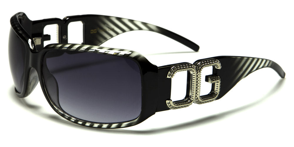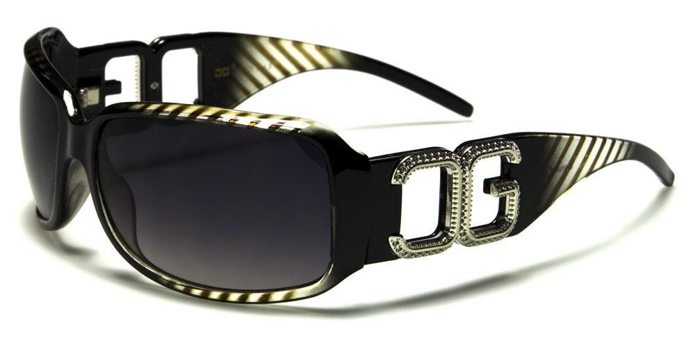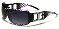 These patterned CG sunglasses feature molded earpieces and nosepieces, which make these celebrity-style gradient sunglasses radiantly stunning. With a rectangle style, these sunglasses feature large and bold silver CG cut out and rhinestone-style lettering that looks extra glamorous. Assorted color options include black; brown; black and white diagonal lines; black, brown and white diagonal lines; black, red and white diagonal lines; black, blue and white diagonal lines; and black, purple and white diagonal lines. These latest-release sunglasses are sure to become instant bestsellers this year, making them a perfect investment for retailers this winter and spring.