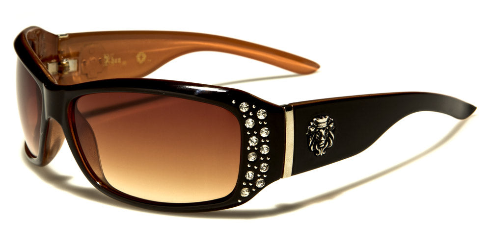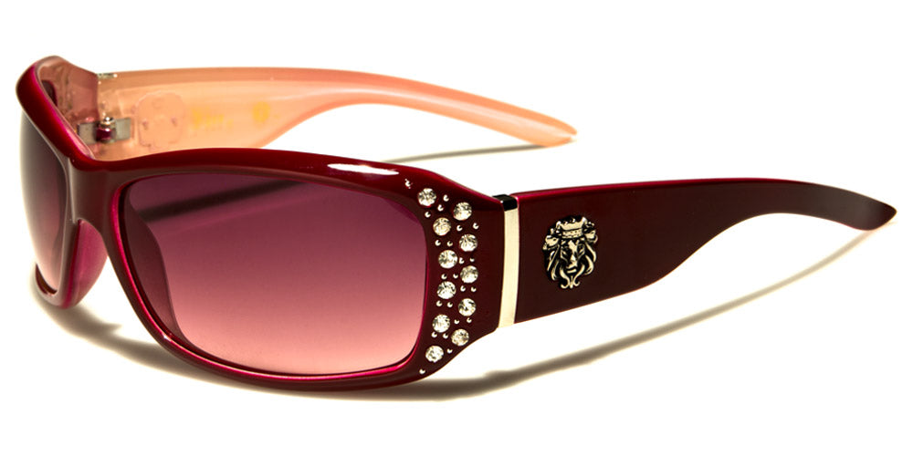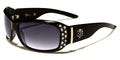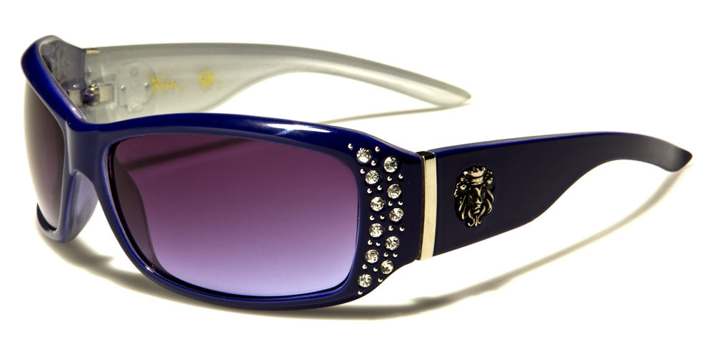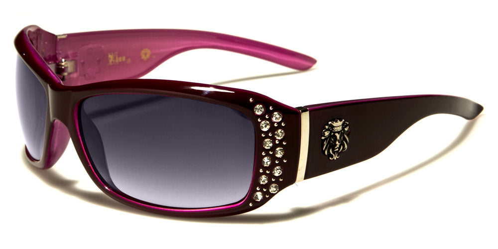 These Kleo women's sunglasses are over-the-top stylish and absolutely head-turning stunning! These rhinestone-studded glasses are glamorous, and the temples are adorned by the unique Kleo logo. These lightweight plastic frames include molded nosepieces and earpieces. Every fashionista must have this superb collection of Kleo styles! Colors include black with gradient smoke lenses, brown with brown lenses, deep pink-red with gradient pink lenses, blue and silver with gradient purple lenses, and deep magenta and pink with gradient smoke lenses. These designs are reminiscent of old Hollywood styles and are sure to turn heads and cause "celebrity" excitements and "sightings." These memorable sunglasses are sure to gain attention in retail establishments.