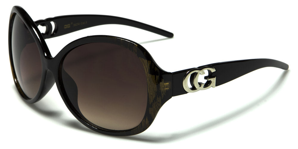 These CG butterfly sunglasses feature an oversized oval shape that is perfect for today's modern-day woman. Made of lightweight plastic, these sunglasses feature curved earpieces and a comfortable nosepiece, as well as a telltale CG metal adornment that highlights the temple of this stunning style. Color options are numerous and include black and gray graphic designs with a silver logo, brown and light brown graphic designs, black with red graphic designs, brown and orange graphic designs, black and olive graphic designs, black and blue graphic designs, and black and purple graphic designs.