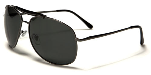 These cool aviator sunglasses for men by Polarspex feature a unique double bridge nosepiece with an extra thick upper bar. The frame is metal, made to be flexible and lightweight for comfort. The arms are straight and thin with a plastic covering over the curved earpiece for better grip. The polarized lenses are large and dark, offering glare elimination, ultraviolet protection and privacy to the wearer. These sweet shades are available in different lens colors to suit your taste.