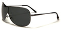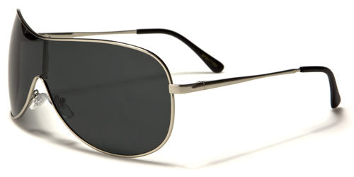 These shield-style sunglasses are made for men by Polarspex. The lenses are rectangular in shape and connect together in the middle to create a protective shield for your eyes, made even better because they are polarized for added protection from the sun and glare elimination. The frame is made of metal, lightweight and flexible, yet still tough enough to withstand use. The arms are thin and straight with a sharp curve at the ear that is covered with a plastic sleeve for better fit.