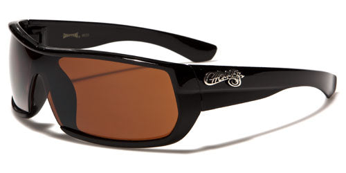 Choppers created a pair of shades that are great for men who like to ride and look good while doing it. The frame is made of thick plastic, strong enough to hold up against wind and road debris, but still lightweight and comfortable to wear. The arms are three-dimensional with a flared out section and a slight curve to the ear. The Choppers logo is shown large on the side in stylized lettering. The rectangular lenses are dark and perfect to protect your eyes and keep you safe.