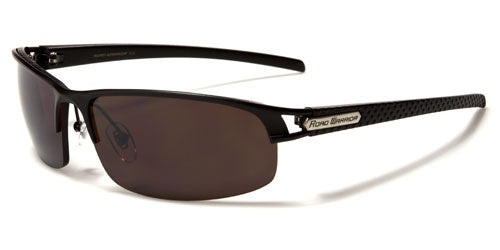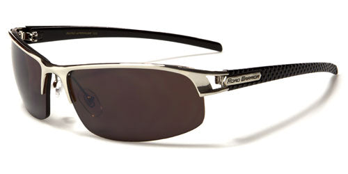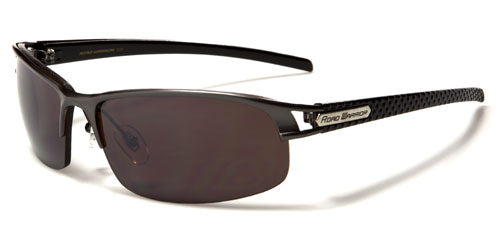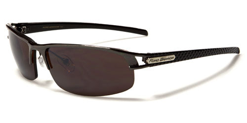These sleek and aerodynamic sunglasses are made by Road Warrior for men who drive and need to keep their eyes safe from the glare of the road. The lenses are especially finished with a dark coating that blocks out the sun and still lets you see the details you need to see to stay safe. The frame is metal, and the arms are plastic, flexible but rigid at the same time and shaped to fit comfortably. The arms are straight and feature a textured pattern throughout.