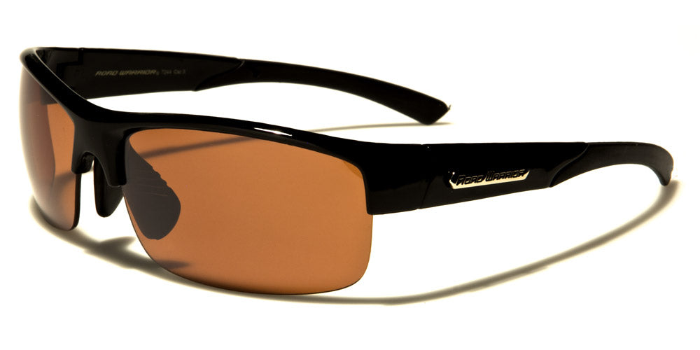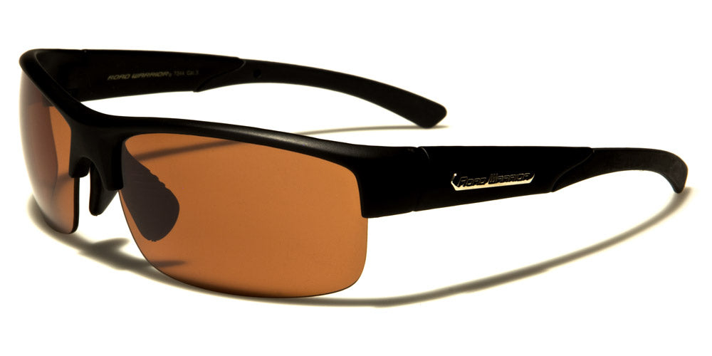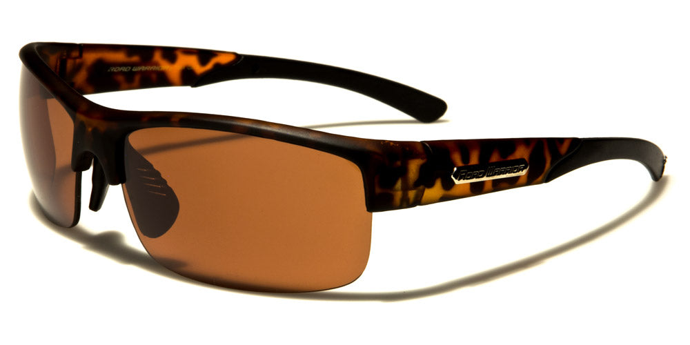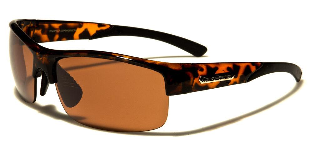 These men's Road Warrior semi-rimless sunglasses are made of plastic and designed for driving. Offering UV400 protection, these glasses provide maximum safety from harmful UV rays that can cause medical conditions of the eye. These sunglasses are available in black and tortoise brown frames. They feature the Road Warrior logo on the arms and are available in assorted colors by the dozen. These popular men's sunglasses are sure to garnish attention from customers in men's department stores, sporting good stores and other establishments.