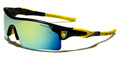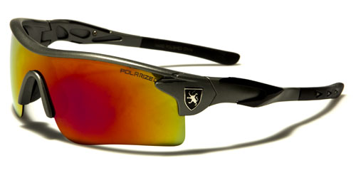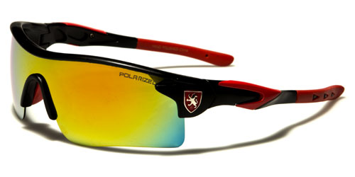 Who says having an active lifestyle means forgetting about good fashion? These Khan bulk sunglasses for men are the perfect example of form and function melding into one. The sleek and sporty shield design features a single, semi-rimless lens with a molded and layered bridge, as well as a colored molded nosepiece. The lens is also reinforced by the endpieces, which hold the famous Khan logo of a shield with a lion on its hind legs. The slim stems feature an arrow accent and triangular cut-outs. The temple tips are wrapped in rubberized plastic for a better grip. Popular color combinations include black/red, black/yellow, black/gray, black/silver/white and white/blue.