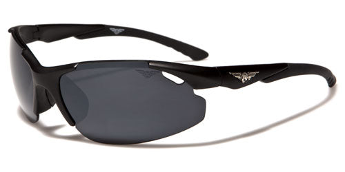 These semi-rimless shades by Oxigen are made for men who are active and want a pair of shades that will be reliable and hold up to active use. The frame is made of plastic, designed to be lightweight and comfortable, but also strong and able to hold its shape. The arms are curved with various patterns and a textured section around the ear for better grip. The Oxigen logo is displayed on the side of the arms. The lenses are rounded rectangles with a smoke or mirror finish that protects your eyes.