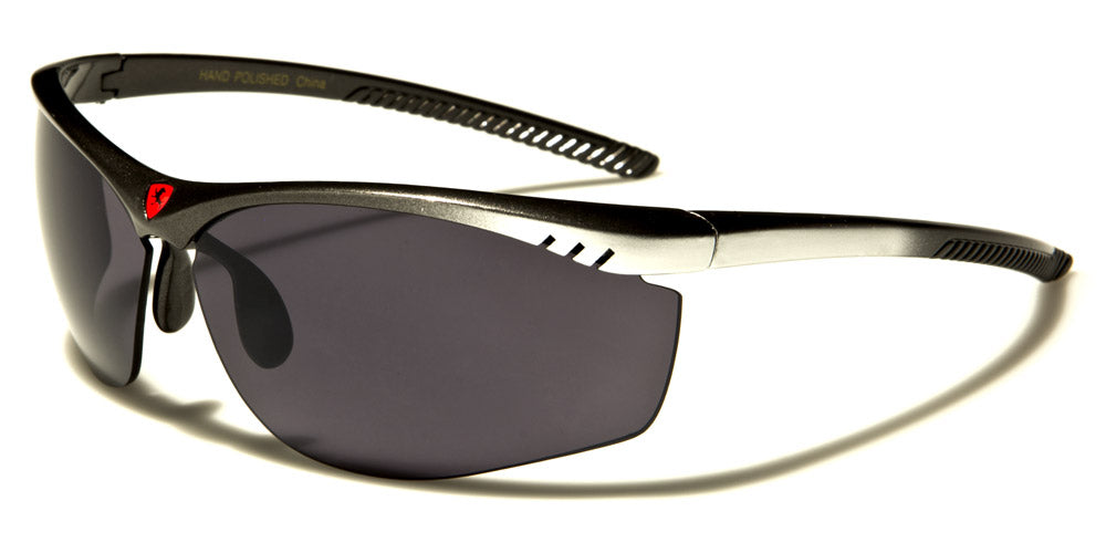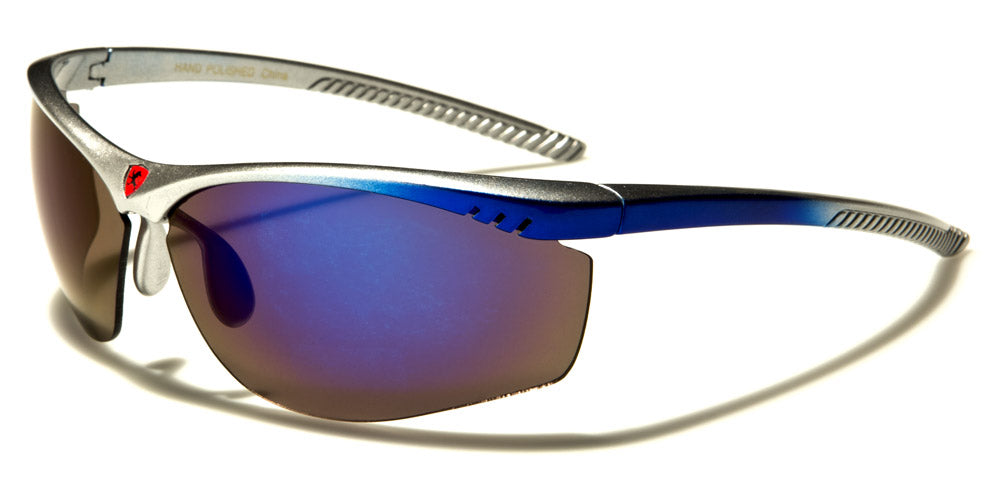These semi-rimless Khan wraparound sunglasses are specifically designed for sporting use. Although they can be used for everyday wear, including running errands or driving, their lightweight style makes them ideal for running off trails, mountain climbing, boating, exploring the great outdoors or other sporting activities, such as volleyball, soccer, etc. These glasses offer maximum comfort for all day activities. Colors include black and silver with smoke lenses, silver with smoke lenses, burnt orange with smoke lenses, orange with brown lenses, red and black with yellow and orange lenses, and silver and blue with purple and blue lenses.