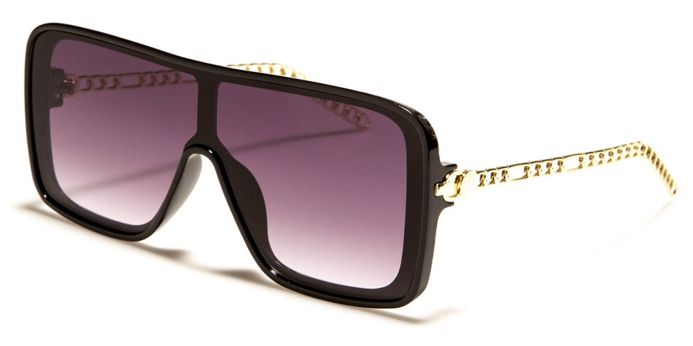 Merging avant-garde design with practical functionality, these shield oval women's sunglasses are a standout choice for contemporary eyewear collections. Featuring an innovative blend of shield and oval shapes, they provide expansive coverage that stylishly protects against sun exposure while offering a flattering fit for various face shapes. Constructed from high-quality, durable plastic, these glasses are built to last and maintain comfort during prolonged use. The UV400 lenses ensure full protection from harmful UV rays, making them a perfect accessory for both sunny leisure activities and daily commutes. These items are sold in bulk by the dozen, with orders containing a range of colors as seen here.