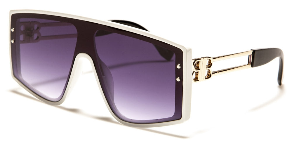 This pair of shield oval women's sunglasses is the perfect fusion of protection and style. Featuring a distinctive oval shield design, they offer an expansive coverage area, ensuring thorough protection from the sun's rays. The sturdy plastic frame provides durability and a comfortable fit for a variety of face shapes. With UV400 protection, they safeguard the wearer's eyes from harmful UV rays while out and about. The design is sleek and minimalistic, without prominent logos, appealing to those who favor understated elegance. Ideal for daily wear or special outings, these sunglasses are available wholesale and come in an assortment of colors to complement any wardrobe.