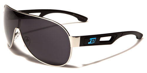 Dxtreme has designed a cool pair of sunglasses for men intended to protect your eyes and show off your attitude and style. The lenses are oversized and oval shaped in the shield fashion, with the two lenses merging in the middle. The lenses are dark and offer excellent protection to your eyes as well as privacy. The frame is made of metal, and the plastic arms come right off the temples. The arms are styled and textured and feature the Dxtreme logo and a cutout in the middle.