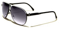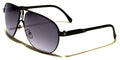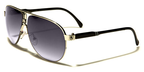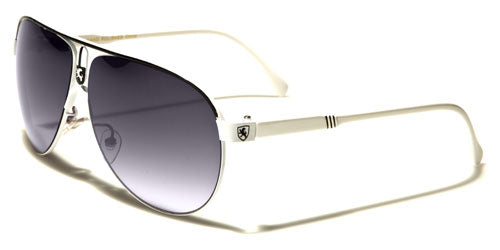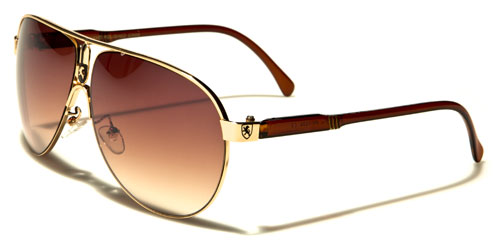 Both men and women will fall in love with these classic, yet trendy, Khan wholesale sunglasses. These aviators differ from the usual double-banded design at the bridge. With these, the sweatbar is perfectly straight until it curves to follow the shape of the lenses. The bridge bears an inverted U-shape. In the middle of the sweatbar and bridge is a logo of a rearing lion that is associated with the Khan brand. The same logo is etched on the metal stems, just in front of the hinges. These frames come inblack, gunmetal, silver, gold and white. The slim stems have three striped accents in the middle as the stem curves at sharp angles to make up the earpieces.
