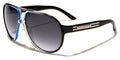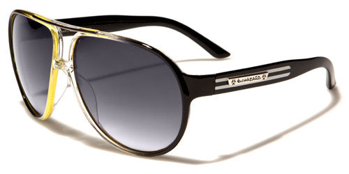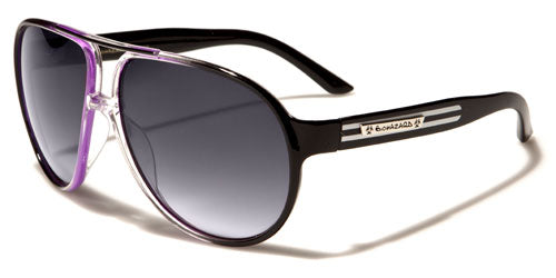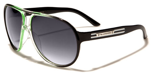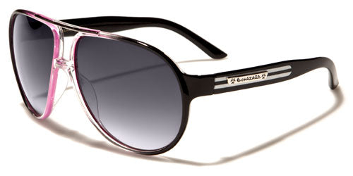 Check out these sweet aviator-style sunglasses by Biohazard made for men and women who want something out of the ordinary. The frame is made of plastic, durable and strong, but also lightweight and comfortable to wear. The lenses are large and protective with a gradient-smoke finish made to block out ultraviolet rays and give you privacy. The arms are thicker than your average aviators and have a stripe feature with a silver Biohazard logo over the top.