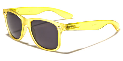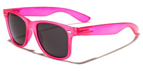 Made for men and women who love attention, these cool retro-style shades feature brightly colored plastic frames that will get you noticed and talked about wherever you go. These glasses also come in a variety of colors to suit your taste. The frame is made of plastic and is lightweight and comfortable to wear. The arms have a classic shape with a flare and curve at the ear. The lenses are smokey gray with excellent ultraviolet protection to keep your eyes safe.