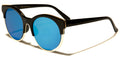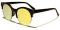 Round mirrored lenses get a modern treatment in these utterly charming feminine sunnies with an edge. Clear plastic rims are sandwiched between colored plastic frames that echo a retro shape. Slender arms narrow into curved earpieces. Your order will arrive with a selection of all six color options available for this style, including: black frames and arms with black lenses; black frames and arms with light gray lenses; black frames and arms with lemon yellow lenses; black frames and arms with medium blue lenses; white frames and arms with light brown lenses; and tortoiseshell frames and arms with dark brown lenses. These sunglasses are sold wholesale by the dozen.