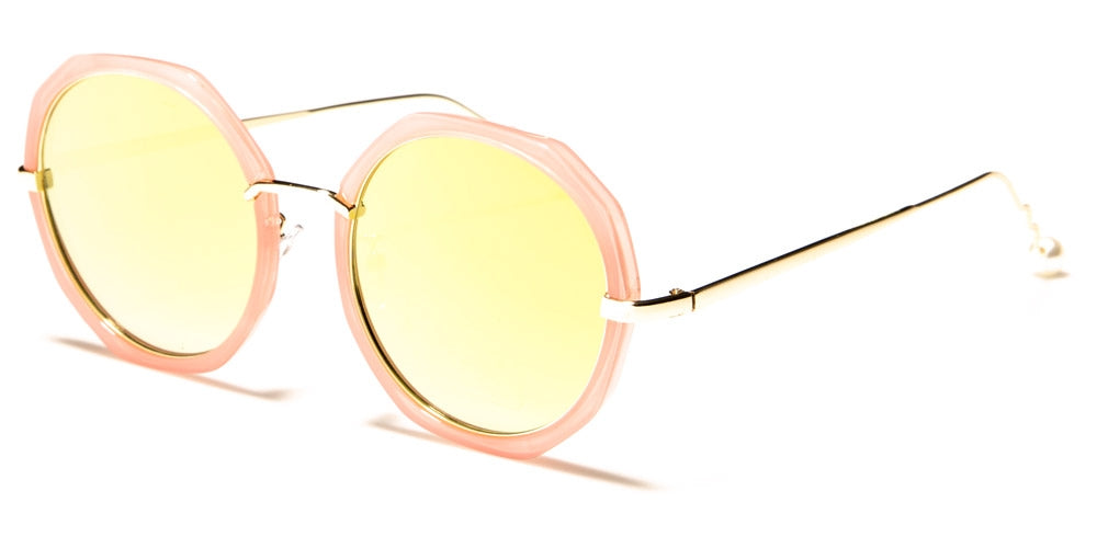 These VG round women's sunglasses are just perfect for those who like to complement their outfits with simple, yet classy accessories. The round, mirrored lenses are bang on trend and come in a variety of colors to suit every taste and preference. Thanks to the inclusion of UV400 technology in the lenses, these sunglasses offer full protection from both UVA and UVB rays. This makes them the ideal choice for a day by the pool or a drive to the mall. This item is sold in wholesale packages of twelve pairs. Each package will contain an assortment of colors as shown.