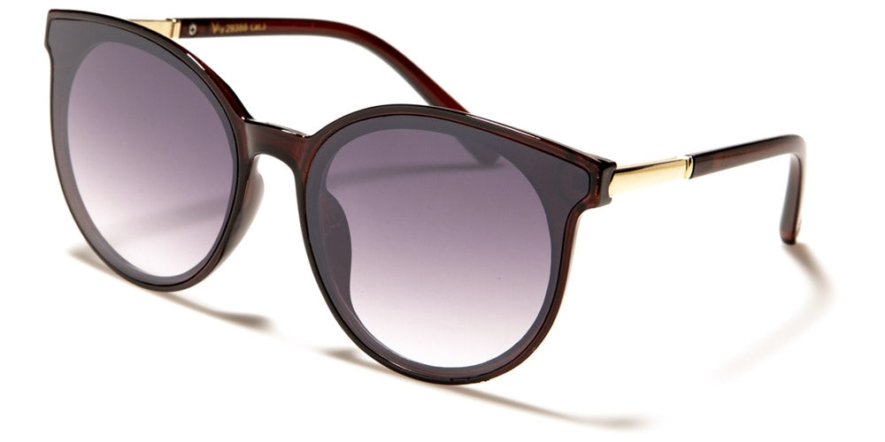 This flattering pair of VG round women's sunglasses is sure to appeal to those who want accessories that not only look fantastic but also provide the ultimate in comfort and eye protection. The classic style of these shades is one that complements all outfit choices. Moreover, thanks to a lightweight metal and plastic frame, the wearer will find these sunglasses comfortable to wear throughout the day. With UV400 technology in the lenses, these shades offer full protection from the sun's harmful UV rays. Available in a range of frame colors and sold in bulk packages by the dozen. Please note, bulk packages will contain an assortment of colors as shown.