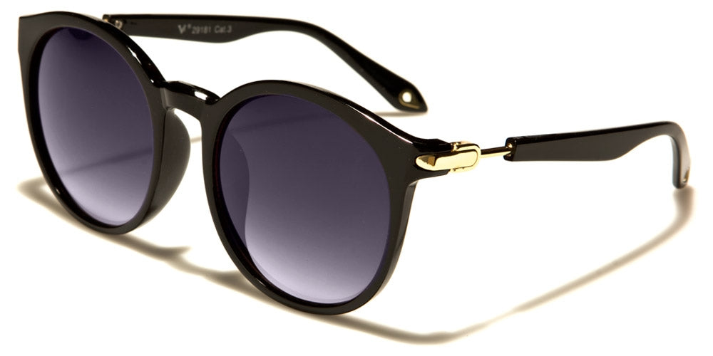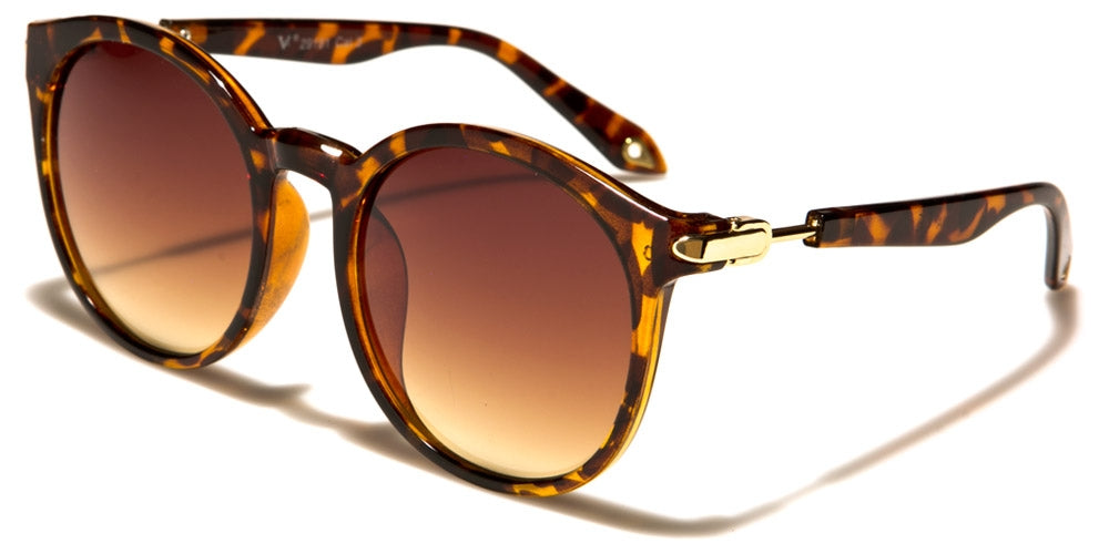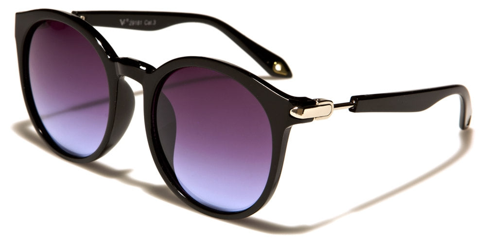The VG round women's sunglasses perfectly encompass form and function. With UV400 technology, the round lenses provide protection from the sun while the stylish design looks wonderful with both formal or casual clothing. Women will love the choice of available colors as well the fact that the dainty arms fit snugly around the face. Please note, these frames are sold in wholesale units by the dozen, with each unit consisting of a selection of color options.