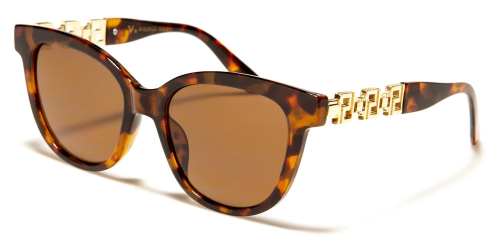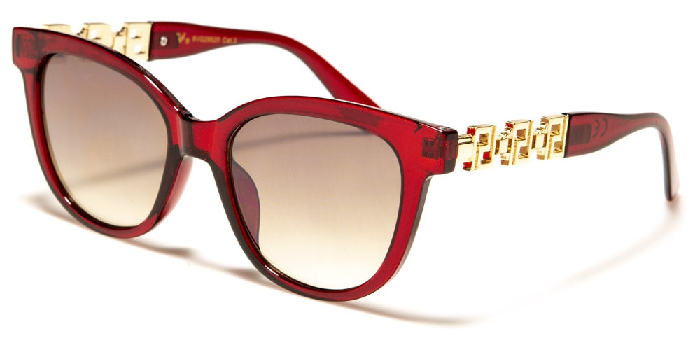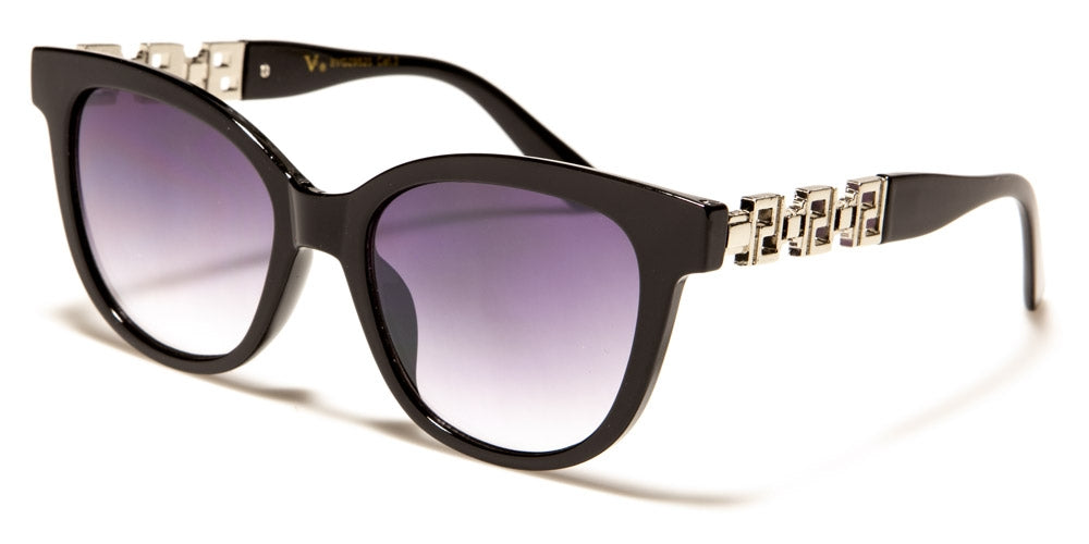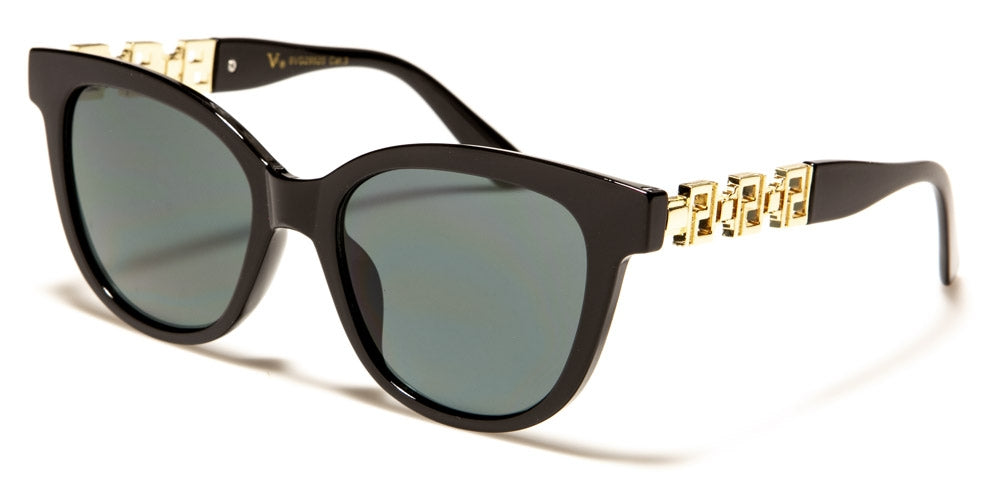 This stylish pair of VG round women's sunglasses are perfect for your retail business. They come with UV400 protection, ensuring your customers' eyes stay safe from harmful UV rays. Crafted with a chic metal and plastic frame, these shades feature fashionable detailing on the arms that adds a touch of sophistication. The design prioritizes wearer comfort, making them suitable for extended use. The tinted lenses not only protect against the sun but also elevate any outfit. With a variety of fashionable colors available, these sunglasses are versatile enough to complement both casual and formal attire. Sold in bulk by the dozen, they are a cost-effective addition to your inventory. Bulk orders contain an assortment of colors.