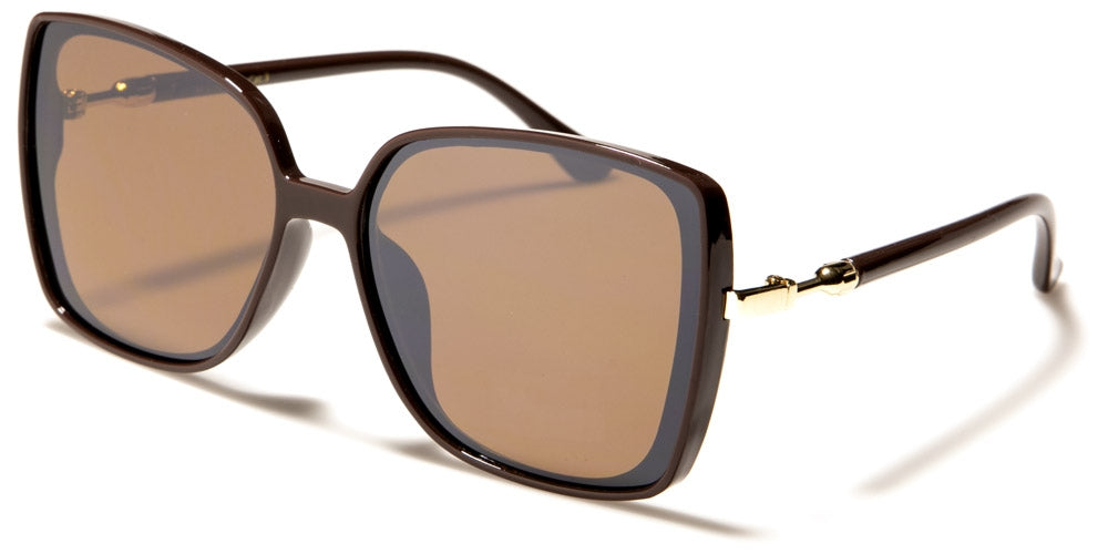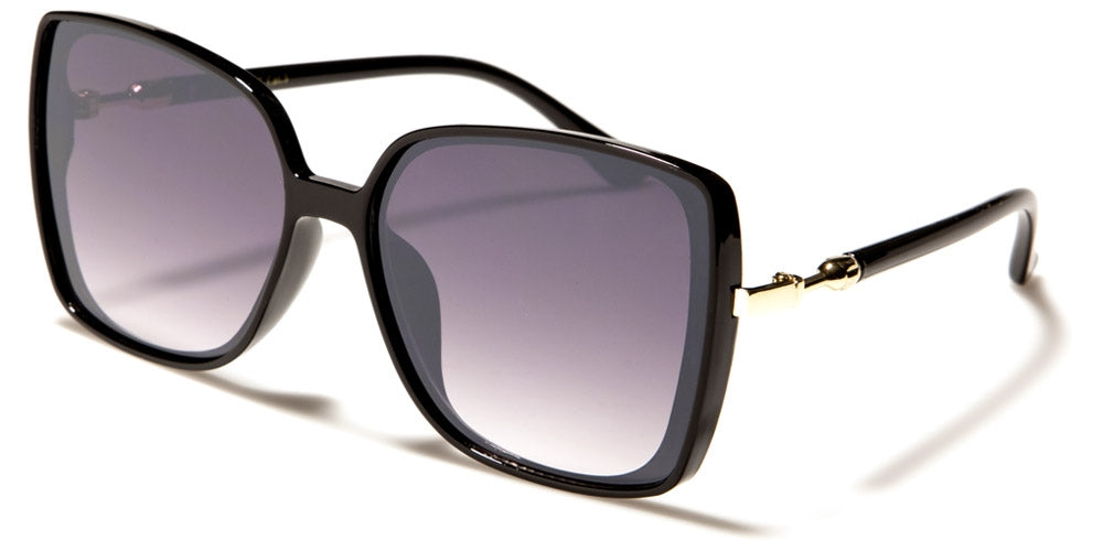 These VG squared women's sunglasses will suit women of all ages. The flattering oversized lenses will suit most face shapes and offer the ultimate in eye protection from the sun. Equipped with UV400 technology in the lenses, these shades protect against both UVA and UVB rays. This makes them ideal for all-day use when out in the sunshine. Available in a choice of popular colors, these shades are sold wholesale in units of twelve pairs. Each unit will contain a selection of the color options pictured in this style.