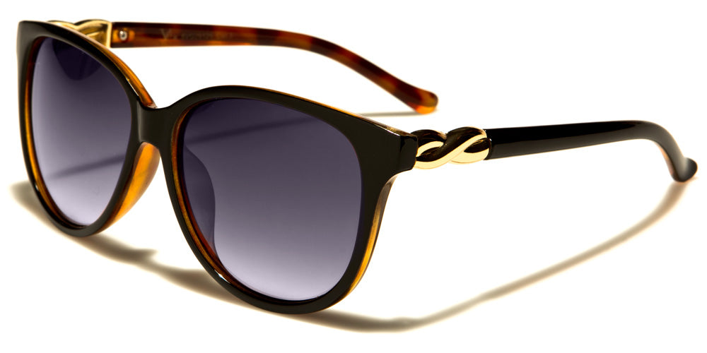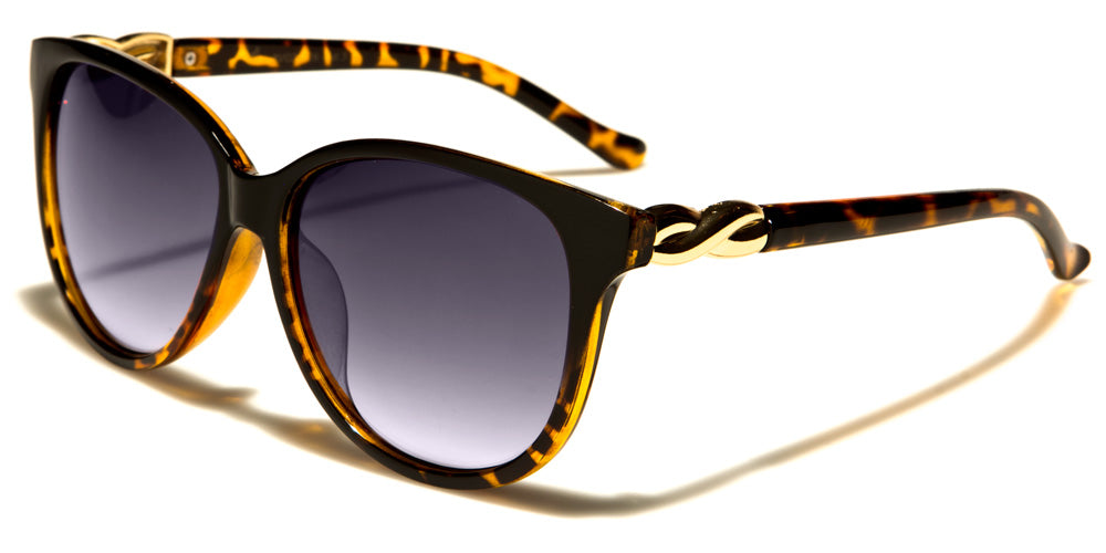 This classic retro style meets soft, round, feminine nuances that create a high profile look without a high profile price tag. The thick plastic frame adds durability that's perfect for everyday wear while remaining fashionable. But the defining moment for these shades is the small embellishment on the front part of each arm. A soft metal entwining creates a subtle twist before giving way to plastic in the remaining part of the arm. This prime blend of metal-on-plastic adds just enough beauty and sophistication without being too demanding. Your order will consist of an assortment of colors available for this style. Sunglasses are sold in bulk by the dozen.