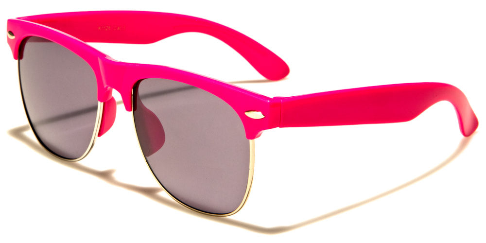 These bulk classic sunglasses are designed for children. They come in several different color combinations, including gray lenses with black frames, gradient smoke lenses with black frames, gray lenses with red frames, gray lenses with pink frames, green lenses with black frames, and gradient brown lenses with brown frames. They also offer superior UV400 protection, which is perfect for children who are always outdoors.