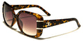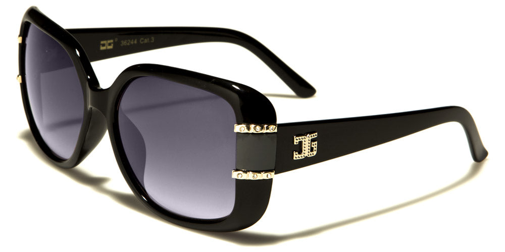 Bold and stylish, these cool sunglasses for women by CG are in your face with sparkly accents at the temples that are sure to be remembered. The frame is made of strong plastic, durable and rigid, but also lightweight and comfortable to wear. The frames come in various colors and prints in the dozen. The arms are straight with a slight taper to the ear and feature the CG logo in either silver or gold bling on the side. The face has two horizontal lines of rhinestones next to the large dark lenses.