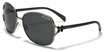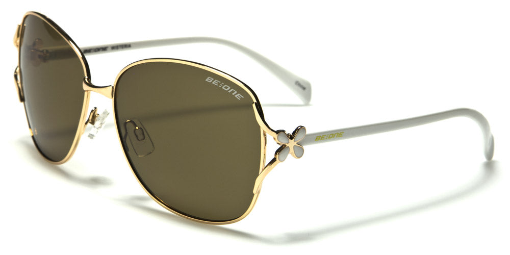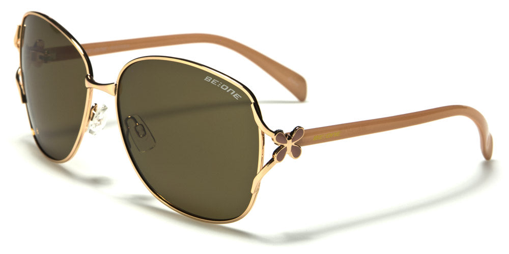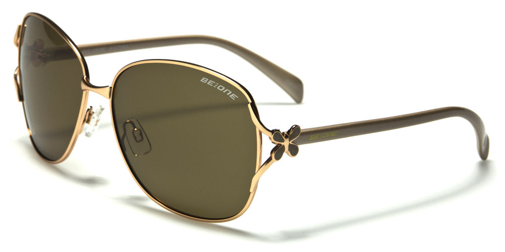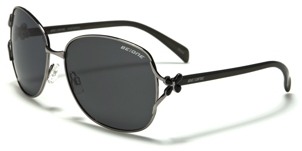 These cool sunglasses for women by BeOne have a cute butterfly design on the side between the face and the arms that gives the otherwise serious shades a bit of character. The shades are a combination of metal and plastic, perfect for flexibility as well as strength. The arms are straight to a sharp curve at the ear and feature the BeOne logo on the side. The lenses are oval in shape with a polarized finish to protect your eyes. Choose from several frame and lens colors to suit your personality.