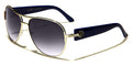 Kleo has created an aviator pair of women's sunglasses that is elegant in its simplicity. The frames are made of metal, and the arms are made of plastic and taper to a curve at the ear. The Kleo icon is displayed in silver at the temples. The gradient lenses provide maximum ultraviolet protection. Choose from a variety of lens colors as well as many different arm colors and prints to suit your own personal taste. The sunglasses are sold in boxes of 12.