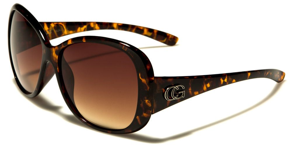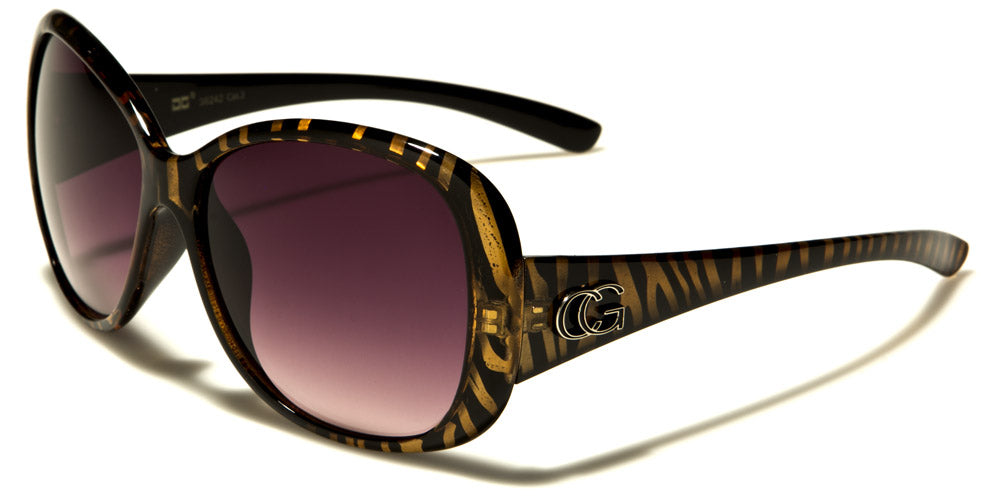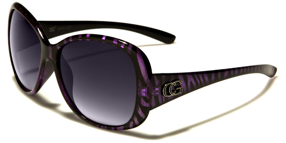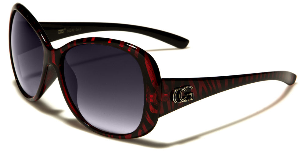 CG has done it again with these sleek women's shades that exude style and fashion sense. The frame is made of strong plastic that holds its shape and is comfortable to wear. The dozen includes a wide variety of colorful animal prints. The arms are straight with a slight taper and curve at the ear. The arms feature the CG logo on the side in raised letters. The lenses are large and oval in shape with a dark finish, perfect for privacy and protection from the sun.